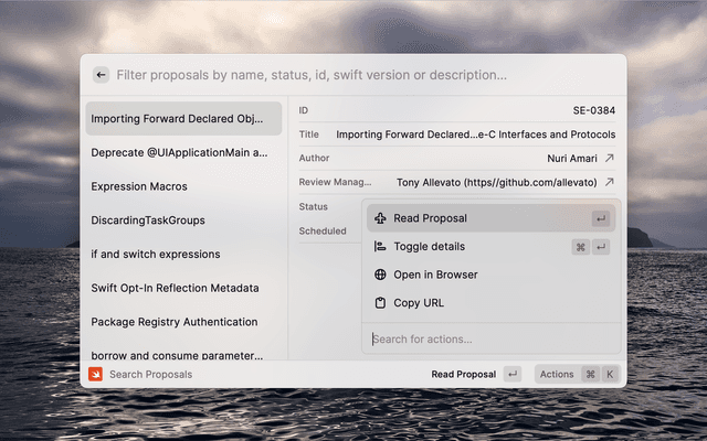 Search and open your recent Xcode Projects, manage your Simulators & Apps, view the latest Releases, create Swift Packages & Playgrounds and quickly clear Xcode cache files.