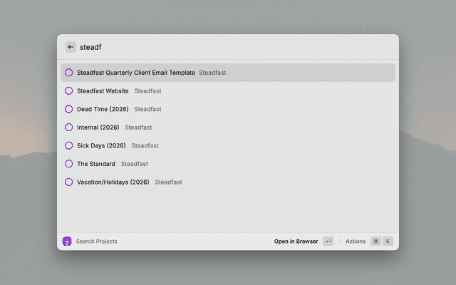 - Open in Browser – Jump to any project in Timely with one keystroke