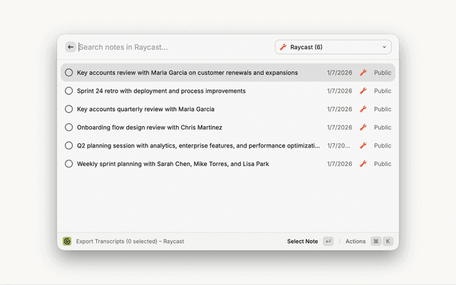 - Export Transcripts - Select multiple notes and export their transcripts in bulk with folder-aware filtering