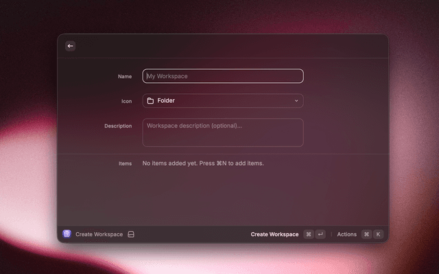 - ๐ฆ Workspace Bundles: Group apps, folders, files, URLs, and terminal commands together