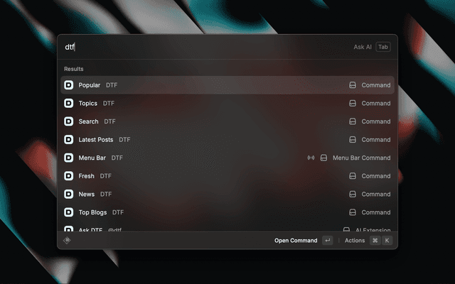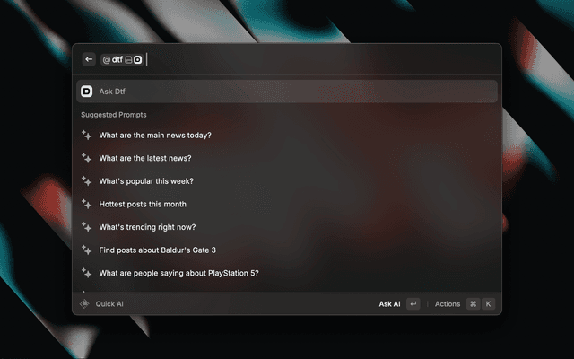 You can also use AI to query DTF directly in any Raycast AI chat by mentioning @dtf: