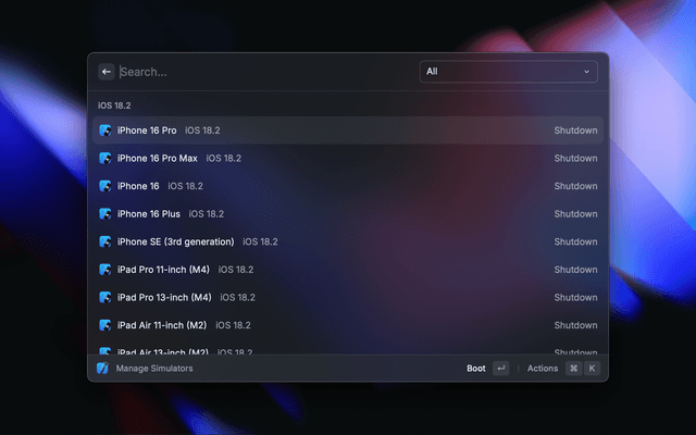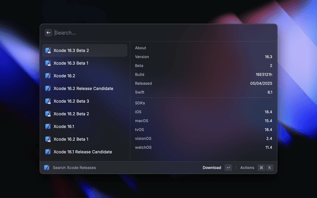 Search and open your recent Xcode Projects, manage your Simulators & Apps, create Swift Packages & Playgrounds and quickly clear Xcode cache files.