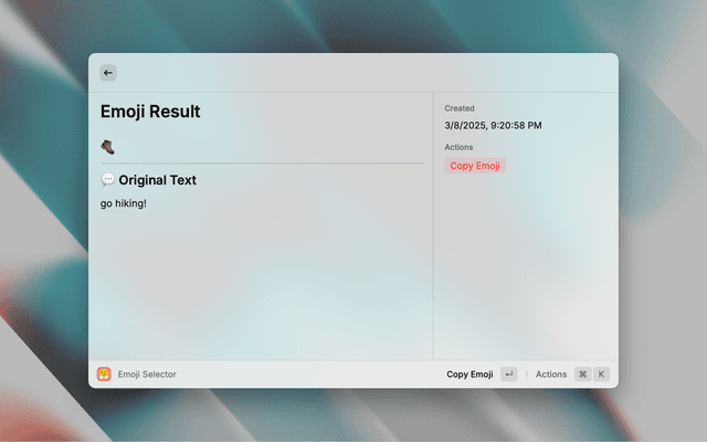 A Raycast extension that intelligently adds relevant emojis to your text to make it more expressive and engaging! ✨