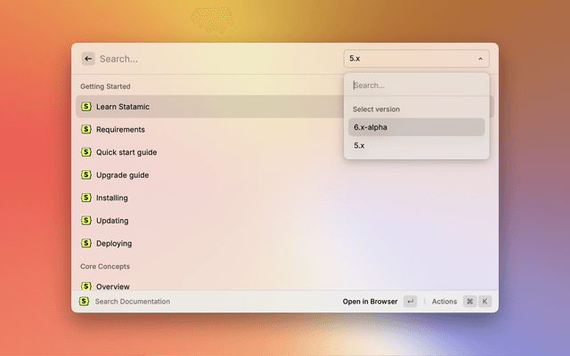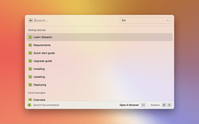 This extension allows you to search the Statamic Documentation directly from Raycast.