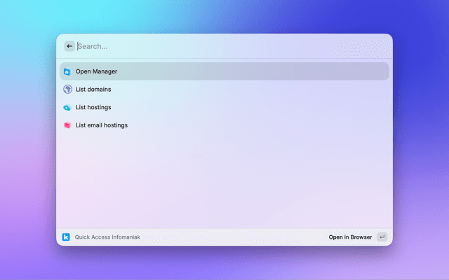 Quick access to Infomaniak's manager pages (Domains, Hostings and Email services)