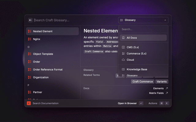 Choose which Craft CMS documentation version to use when searching the CMS and All Docs sections.
