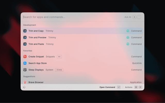 Preview Trim uses a Raycast view command to show the original input and trimmed output, inspired by the selection-preview pattern used in Raycast's JSON Format extension.