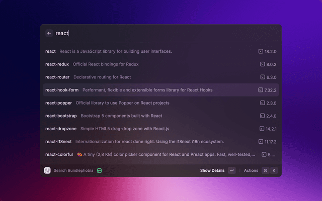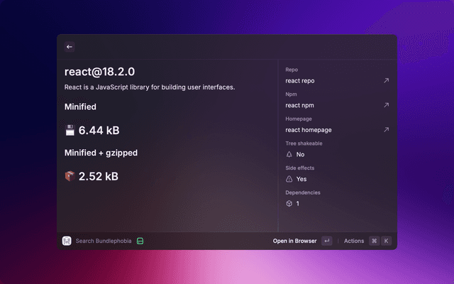 Find package and check its size on bundlephobia