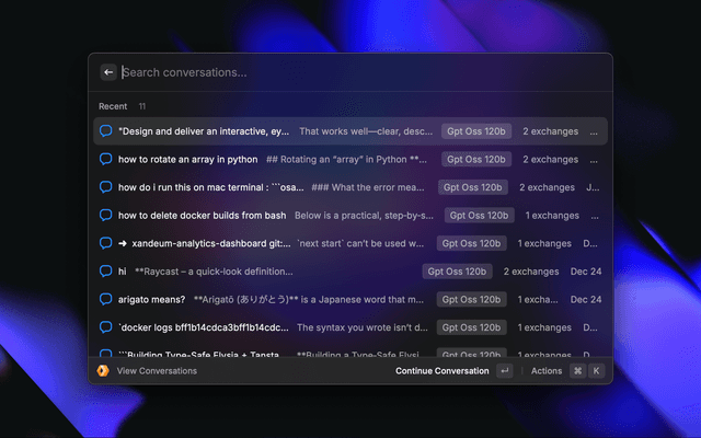 Interact with Cloudflare AI models directly in Raycast with conversation history and follow-up messages.