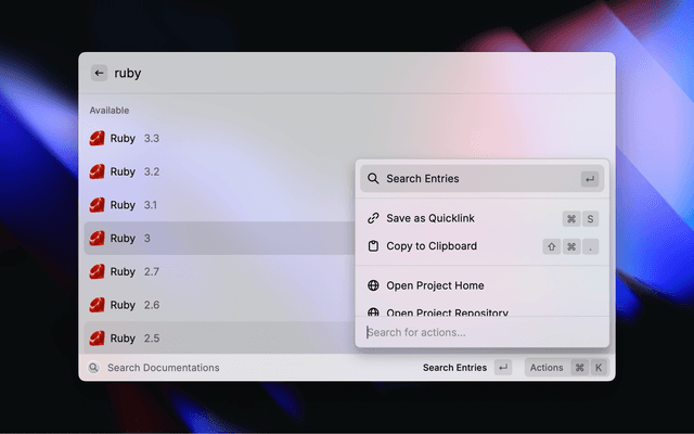 The Open in DevDocs action requires the DevDocs app to be installed.