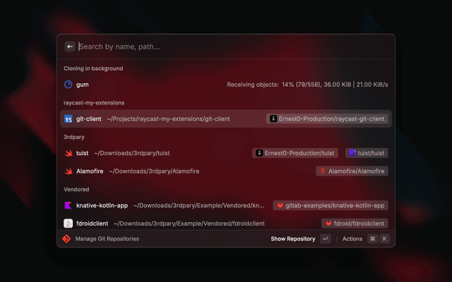 Manage Git Repositories to list all your repositories.Create Quicklink (or ⌘ + L) on the repository list item.Which environment variables are used when performing Git commands?