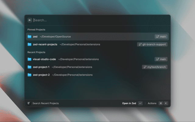 A Raycast extension that allows you to quickly access and open your recent projects in Zed editor.