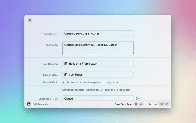 - ⭐ Default Template: Set your preferred template as default for ultra-fast startup