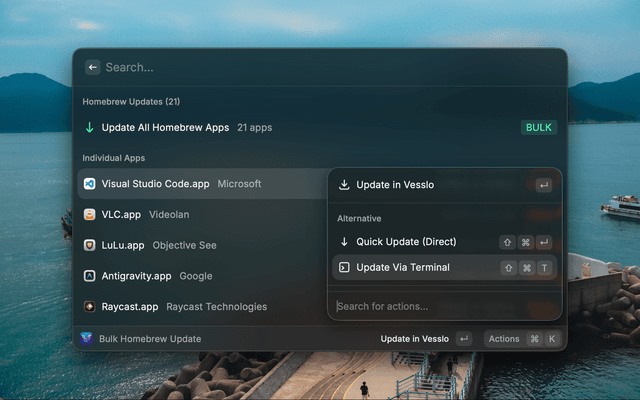 - π View Updates - Check for pending updates (Homebrew, Sparkle, App Store, Manual)