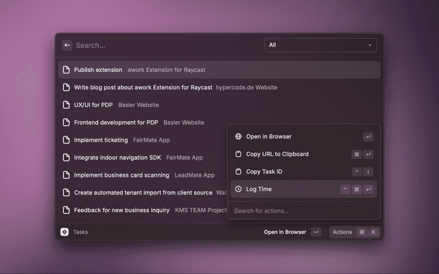 This is a Raycast extension with commands for the work management platform awork.