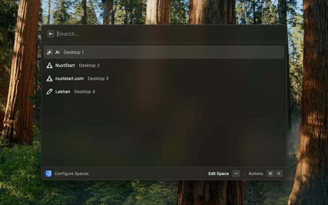 Allows you to name your spaces "Desktop 1" => "Work" and "Desktop 2" => "Personal"