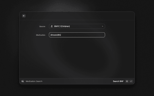 A fast, efficient Raycast extension designed for nurses, students, and healthcare professionals. It allows you to search the British National Formulary (BNF) and BNFC (Children's Formulary) directly from your keyboard.