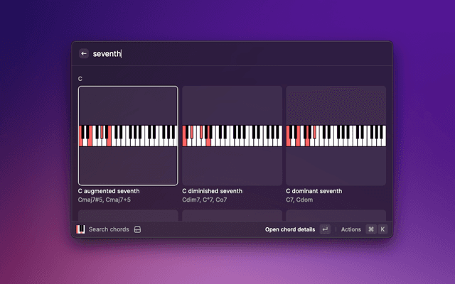 Find and learn piano chords and their inversions. Scales to be added in the future.