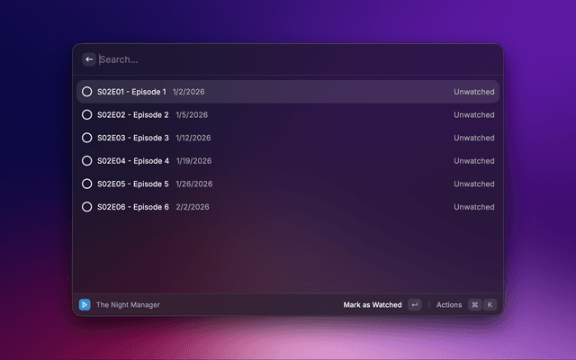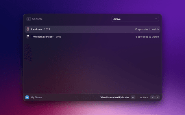 Manage your TV shows and movies with BetaSeries directly from Raycast.