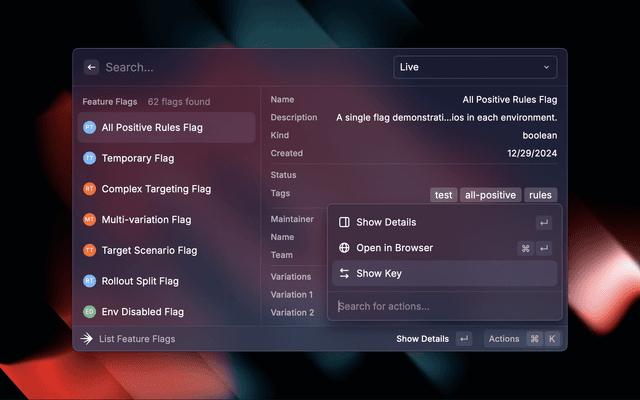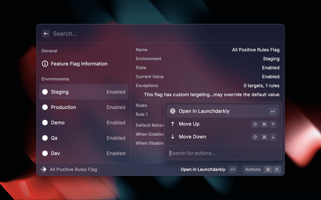 ⌘ + ↵ Open flag in LaunchDarkly web UI