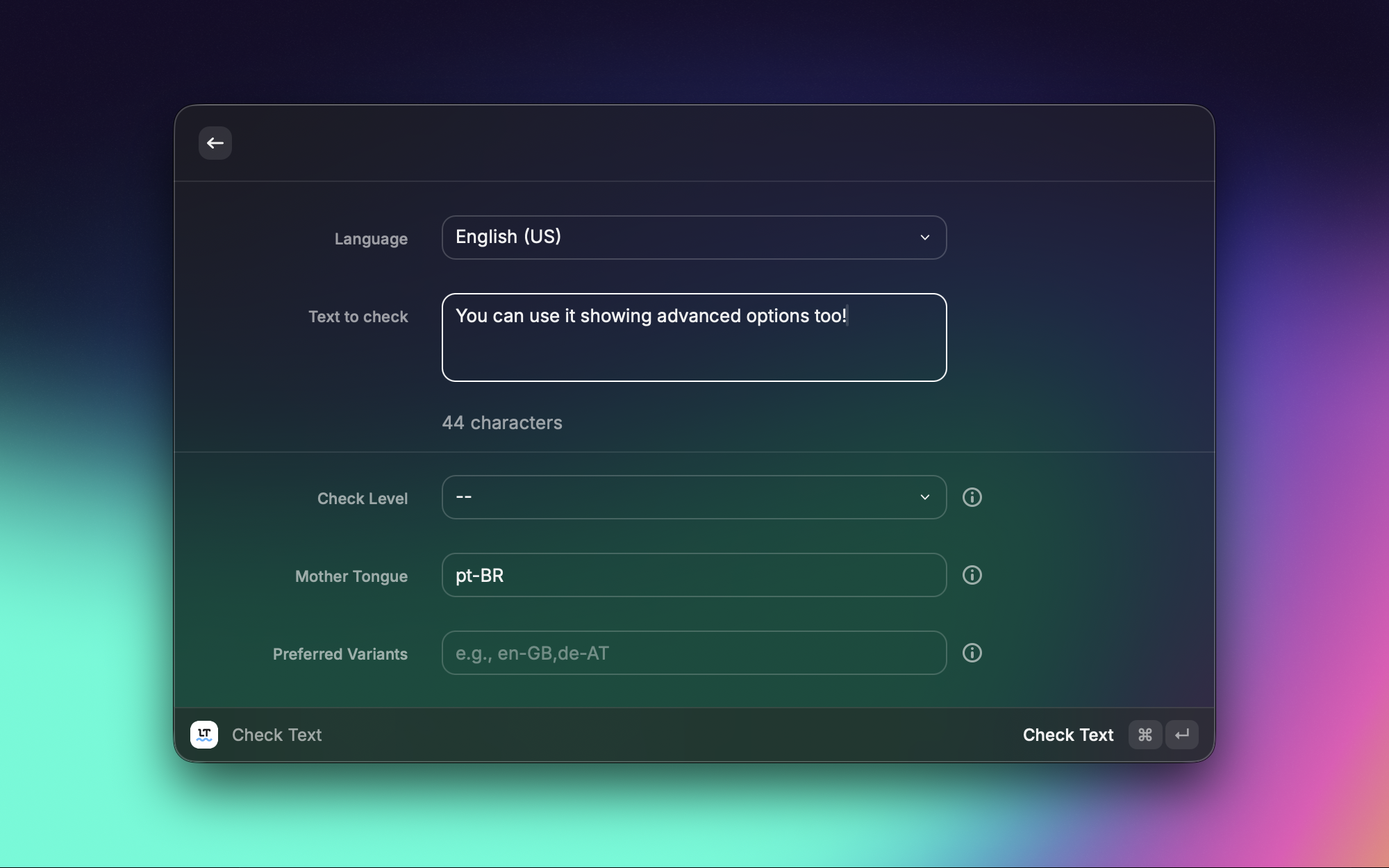 ββ΅ to apply all and paste instantlyUse "Check Text Instant" for quick corrections without opening UI. Perfect for: