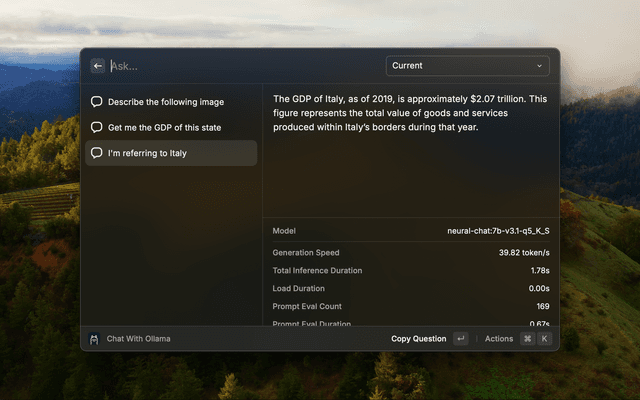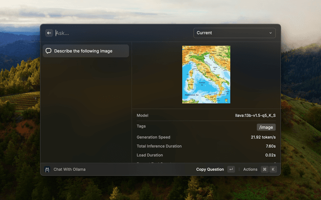 Use Ollama for local llama inference on Raycast. This application is not directly affiliated with Ollama.ai.