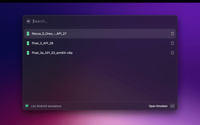 export ANDROID_HOME=~/Library/Android/sdk export ANDROID_SDK_ROOT=~/Library/Android/sdk export ANDROID_AVD_HOME=~/.android/avd
