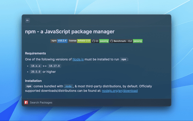 Raycast extension to search and favorite npm packages