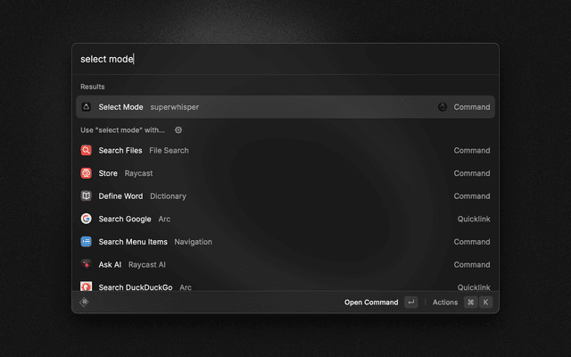 Requires the installation of superwhisper. Go to https://superwhisper.com to download & use for free.