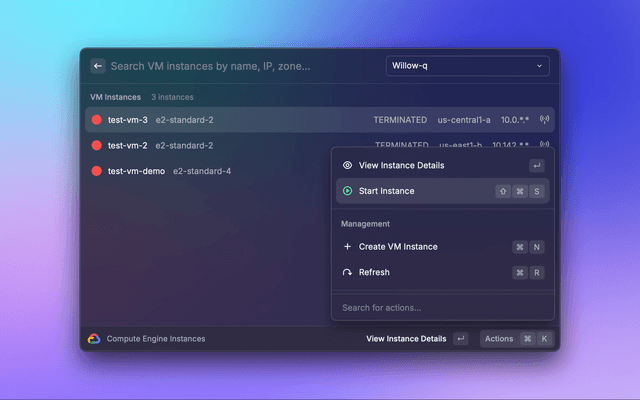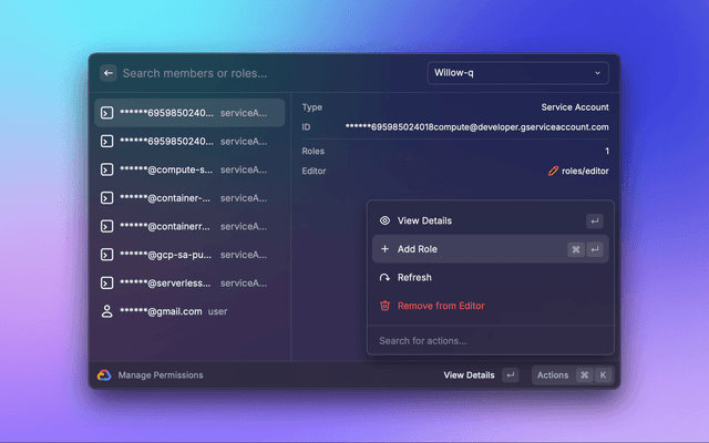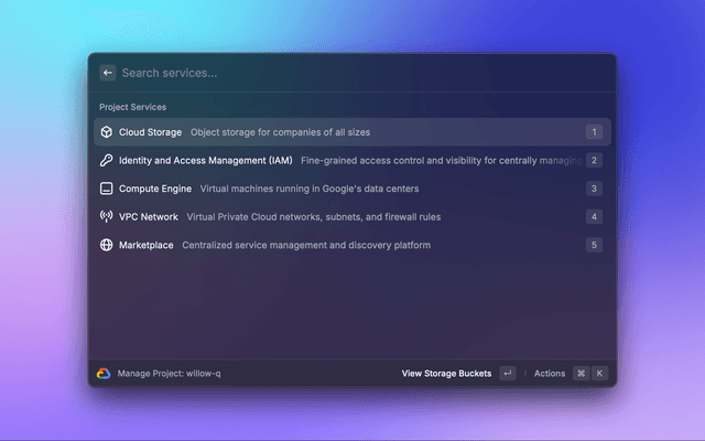 A lightweight Raycast extension for managing Google Cloud resources efficiently. Access and control your GCP projects, services, IAM, storage, and more—all without leaving Raycast.