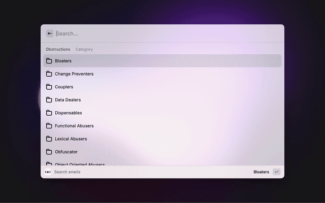 Discover all code smells and how to solve them based on Code Smells Catalog created by Marcel J.