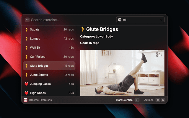 - Menu Bar Reminders: Configurable reminders to take exercise breaks