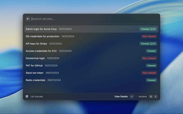 • ๐Ÿš€ Quick Creation - Create secrets directly from Raycast search with arguments