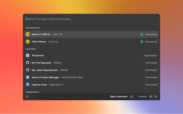 - Type "Search llms.txt" or select it from your commands