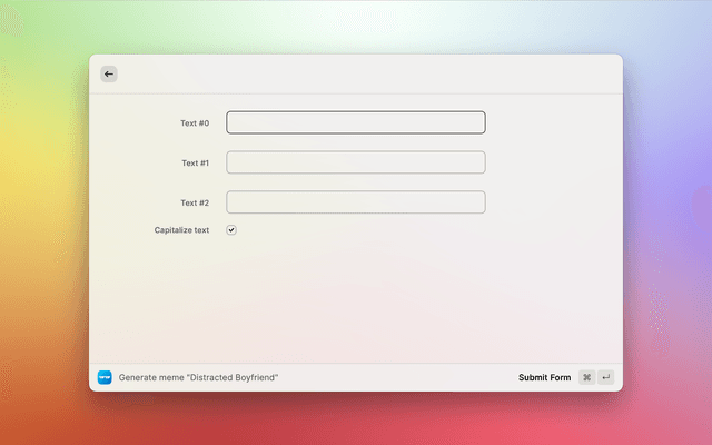 By default, this extension uses shared API user. If you wish to use your own API user, you can sign up for a free account for Imgflip at https://imgflip.com/signup, and provide your credentials keys in the Command Preferences.