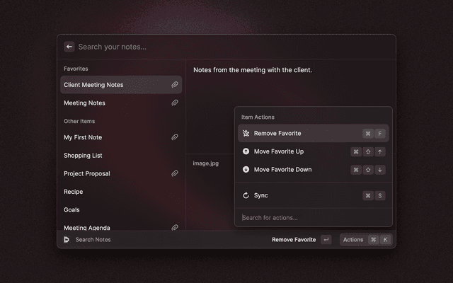 🔎 Search your vault 📋 Copy and paste fields 🔑 Generate TOTP codes ⭐ Mark items as favorites