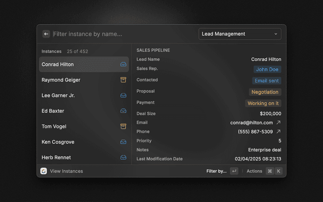 - Archive/Unarchive Instance: Toggle the archive state of an instance
