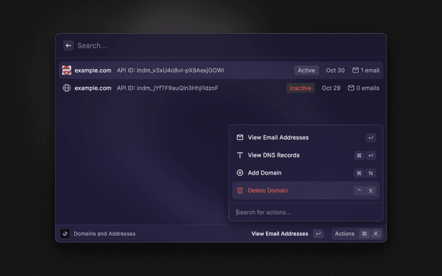 This is a Raycast extension for Inbound - Email API for Developers - Send, Receive & Reply.