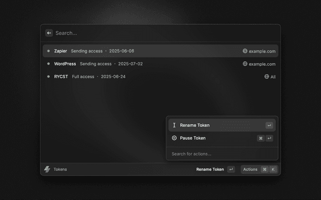 Navigate to IntegrationsClick Manage under "API tokens"Click "Create new token"Enter "Name" of your choice (maybe: RYCST?)select "Full access" under permissions otherwise you can use "Custom access" to customizeCopy the token and Paste it in Preferences OR when promptedLooking for more email extensions? Try these: